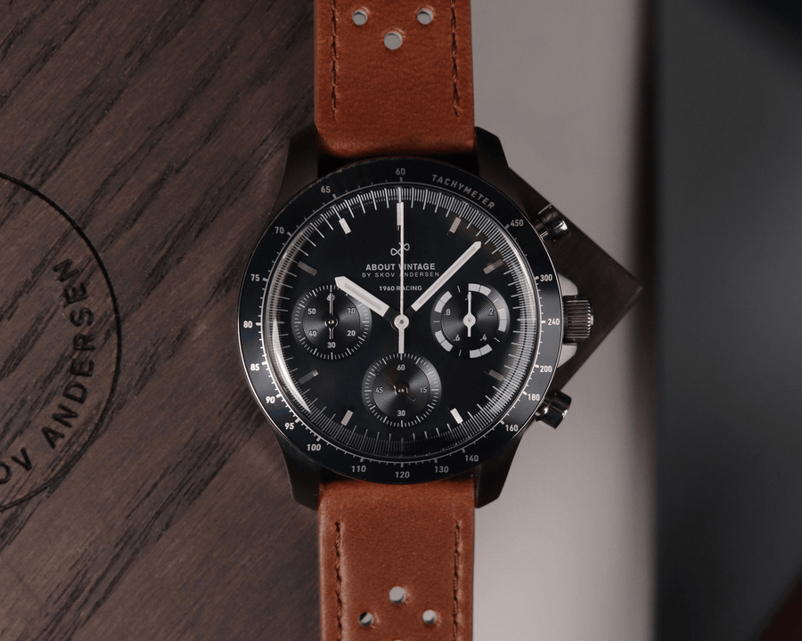 The new 1960 racing is a chronograph watch with all the benefits that type of watch offers. It is equipped with three sub dials, showing twentieth seconds for accurate timing of track-laps on the right, minutes on the left, and running seconds in the middle. The watch is powered by a Japanese made Miyota movement, that is widely known for their durability and reliability.